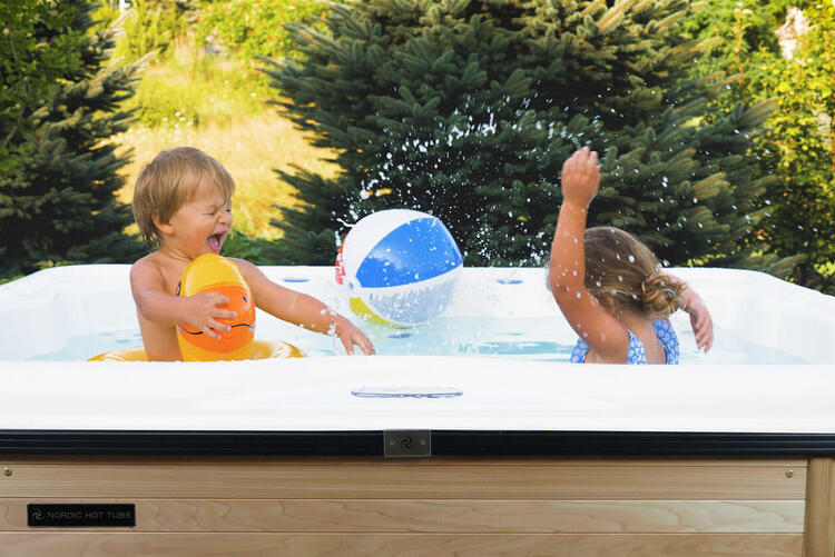 The Nordic tub is made from HDPE, a strong plastic that does not tear and feels wonderfully soft. The textured, non-skid lavant finish, the Nordic Permashell™ surfaces are easy to maintain and last for the lifetime of your hot tub!